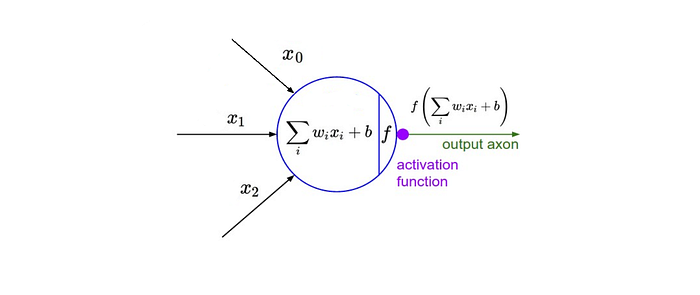 I won’t go too in depth into the math, but information is passed between network layers through the function shown above. The major points to keep note of here are the tunable weight and bias parameters — represented by w and b respectively in the function above. These are essential to the actual “learning” process of a deep learning algorithm.